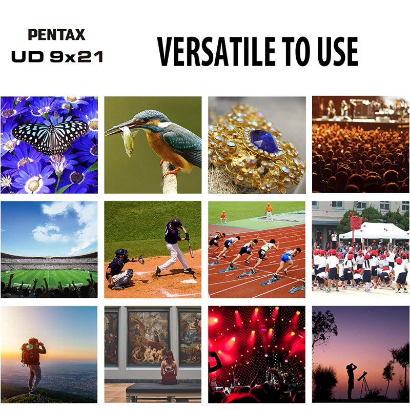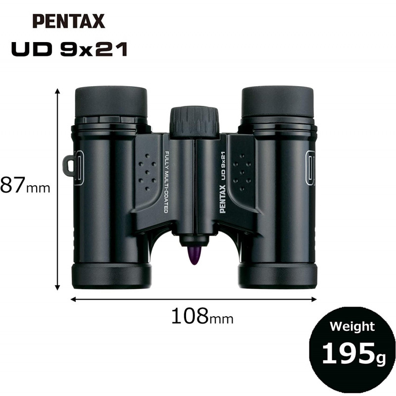 Найлегший, компактний бінокль Pentax UD 9x21 вагою лише 195 грам відповідає сучасним вимогам та стандартам: повне багатошарове просвітлення лінз, призми з високоякісного оптичного скла BaK4. Оновлене покриття лінз з покращеним світлопропусканням створює кришталево чітке зображення. Модель бінокля Pentax UD 9x21 призначена для використання під час подорожей, спостереження за дикою природою, тощо.