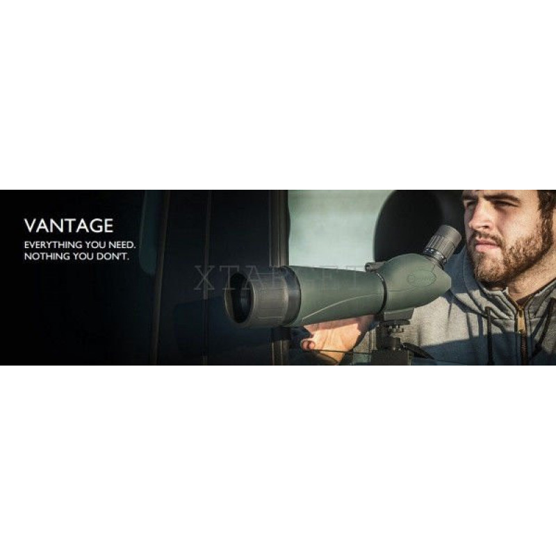 Оптика підзорної труби покрита повним багатошаровим просвітлінням і поміщена в ударостійкий, водонепроникний полікарбонатний корпус. Зсередини корпус заповнений азотом для запобігання конденсату на лінзах. Окулярний вузол Hawke Vantage розташований під 45º по відношенню до поздовжньої осі труби - це дуже зручно для спостережень об'єктів, розташованих вище рівня горизонту, а також при спостереженнях зі штатива. Разом з тим, що поставляється в комплекті штатив можна використовувати як настільний для більшої зручності спостережень. Кут спостережень може коригуватися, завдяки повороту труби в хомуті штативного адаптера, завдяки чому стає більш зручним спостереження з положення лежачи. Висувна сонцезахисна бленда захистить об'єктив не тільки від сонячних відблисків, але і від крапель дощу.