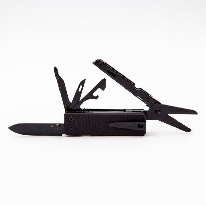 Конструкція також доповнена дрібними інструментами: пилкою із серейторним заточуванням, відкривачкою для пляшок, плоскою та хрестоподібною викрутками, консервним ножем, пилкою для підрівнювання нігтів, лінійкою та шилом з нитковдівачем. Інструменти ховаються в мініатюрне руківʼя та утримуються у відкритому положенні за допомогою блокувального механізму, щоб унеможливити випадкове складання під час навантаження.