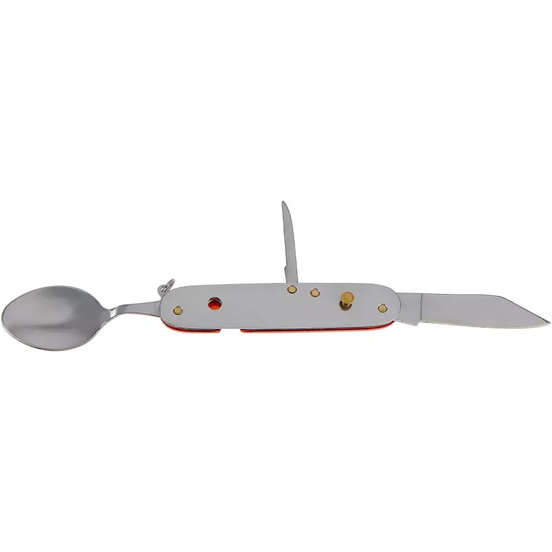 Active Luncher – це багатофункціональний ніж від українського бренду Active Knives&Tools. Даний мультиінструмент являє собою набір усіх необхідних столових приладів, які можуть знадобитись у поході або під час кемпінгу. Active Luncher складається з двох частин. Перша має клинок, ложку та шило. Інша частина складається з виделки, відкривачки для пляшок, консервного ножа та штопору. Для того, щоб відокремити одну частину від іншої потрібно відкрити ложку та виделку. Усі інструменти багатофункціонального ножа Active Luncher виготовлені з високоякісної нержавіючої сталі, а руків’я має текстуровані накладки з алюмінію.