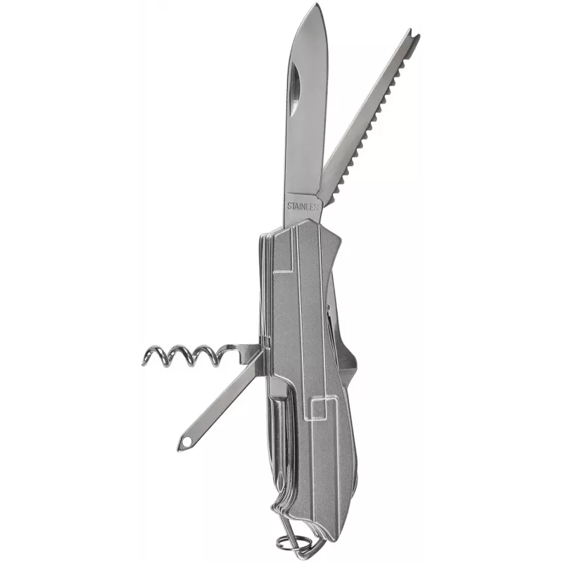 Інструменти виконані з нержавіючої сталі, а ергономічне руків’я з алюмінію. Завдяки невеликим розмірам та вазі, його можна носити в кишені, в сумці або рюкзаку і він завжди буде під рукою.