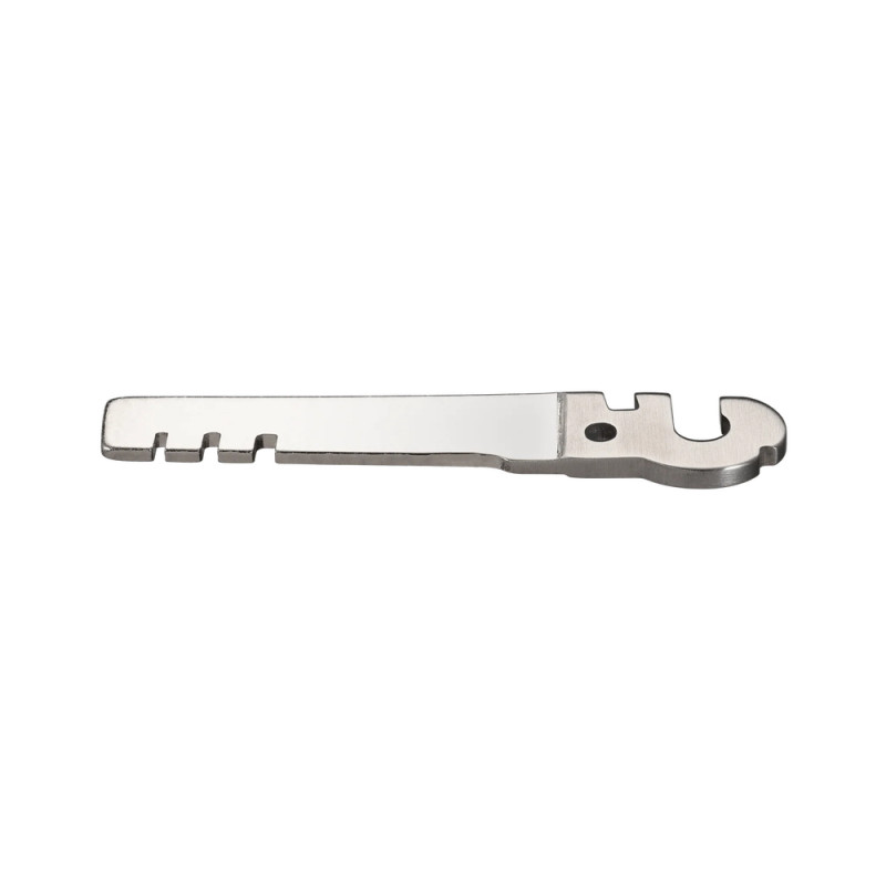 Аксесуар легко фіксується на мультитулі, перетворюючи його на ще більш універсальний інструмент. Високоякісна сталь DIN 1.4116 наділяє конструкцію несприйнятливістю до механічних пошкоджень та підвищує стійкість до корозії завдяки вмісту високого відсотка хрому. Для покращення показників міцності, сталь пройшла спеціальну термообробку. В результаті твердість металу досягла 54-56 HRC, що позитивно відбивається на терміні служби виробу.