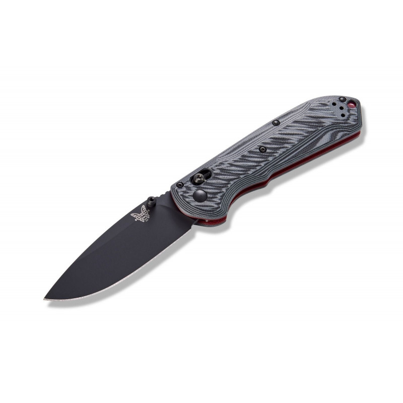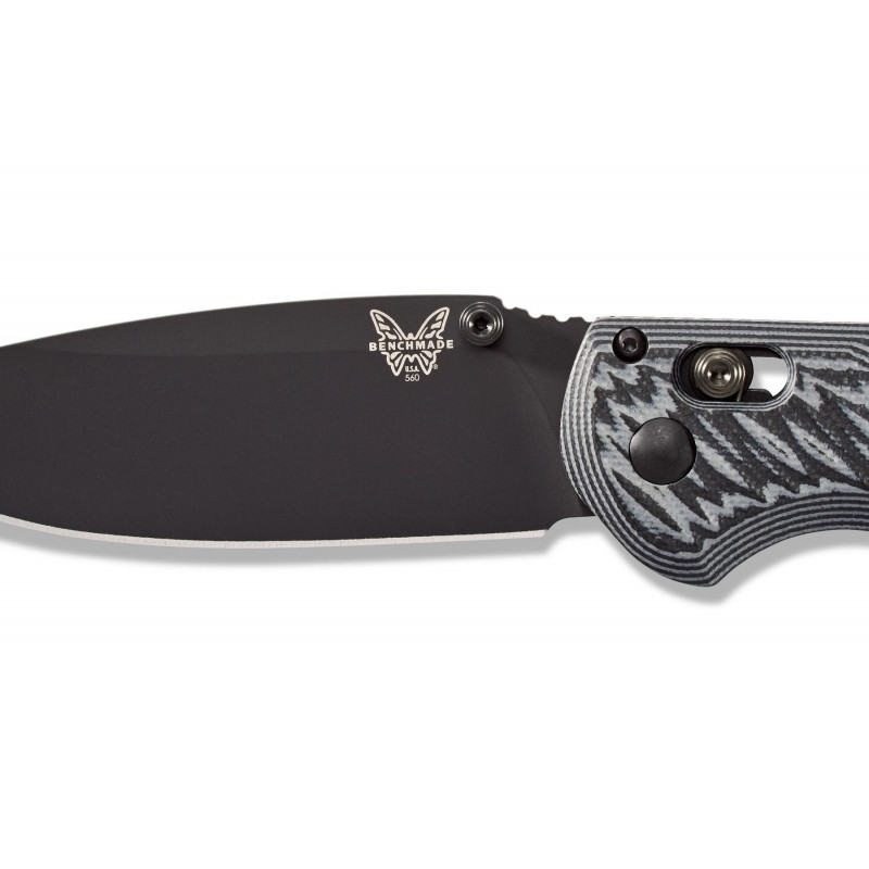 Лезо цього дивного кишенькового ножа EDC виготовлено зі сталі CPM M4. Тип інструментальної сталі, добре зберігає гостроту. M4 також дійсно міцний і, в порівнянні з іншими типами суперсталі, відносно легко заточується. Єдине, на що потрібно звернути увагу, це іржа: CPM M4 не стійкий до корозії. Щоб врівноважити це, Benchmade поліпшив лезо чорним покриттям Cerakote. Спочатку це покриття було розроблено для обробки вогнепальної зброї. Таким чином, ви знаєте, що він також досить сильний для ножа.