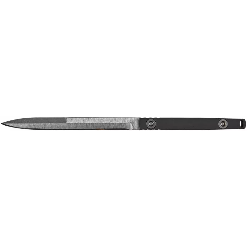 Клинок виготовлений з нержавіючої сталі марки 1.4116, товщиною 5 мм. Дана марка сталі гартується до твердості 57 HRC. Клинок профіль Needle-Point та шліфовану фінішну обробку.