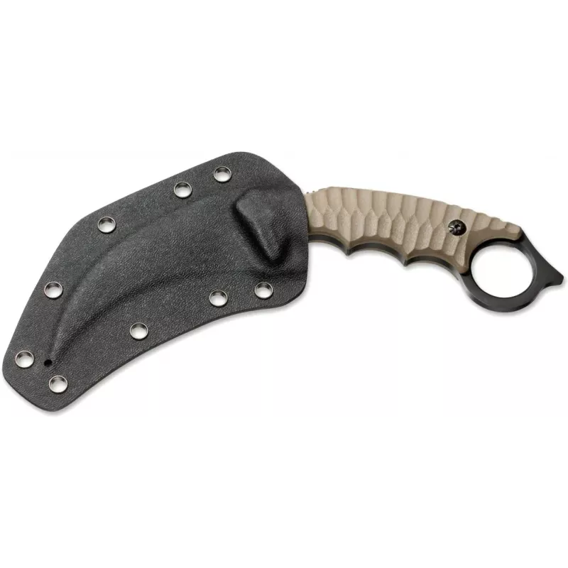 Керамбит Boker Magnum Spike Karambit — ніж з вигнутим фіксованим клинком і заточуванням по увігнутій стороні, що слугує для нанесення січних ударів. Клинок виготовлений з нержавіючої сталі 440А. Рукоять з текстурованими накладками зі зносостійкого склотекстоліту G-10 має зручні підпальцеві виїмки для більш надійного хвата. Комплектується чохлом з кайдекса.