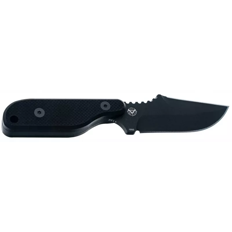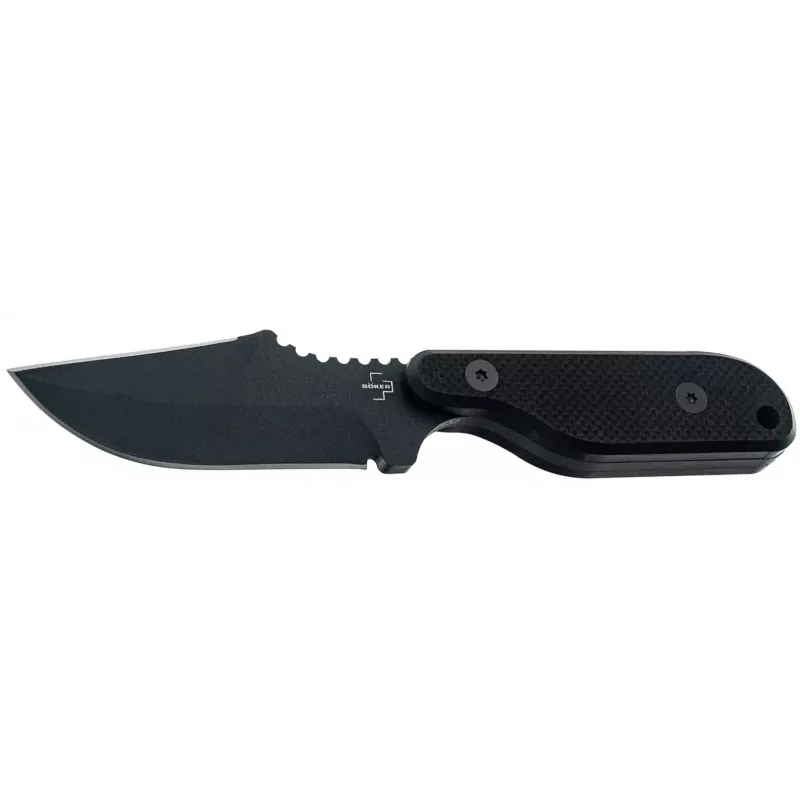 Boker Plus Kagat - це тактичний фікс, створений Boker у співпраці з експертом філіппінських бойових мистецтв Френком Дело-молодшим. Клинок виготовлений з вуглецевої сталі 1095 з порошковим чорним покриттям, яке підкреслює тактичний характер ножа та забезпечує додатковий захист від корозії. Насічки на обуху у поєднанні з профілем Harpoon забезпечать більш точний та контрольований різ і прокол. Full Tang конструкція забезпечить достатню стійкість під час найважчих задач на EDC та аутдорі. Накладки руків’я виготовлені зі склотекстоліту G10 для надійного хвату навіть вологими руками. На торці передбачений отвір під темляк. У комплекті - кайдексні піхви та адаптер для зручного носіння на ремені.