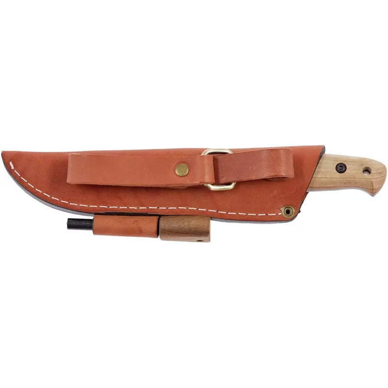 Ніж з фіксованим клинком Adventurer від української ножової компанії BPS підійде для щоденного носіння, стане в нагоді на природі та в побуті, на риболовлі та під час походу. Ніж має конструкцію фултанг, що робить його надійним та міцним помічником навіть у важких умовах. Клинок виготовлений із якісної сталі і має скандинавські спуски, завдяки чому має ідеальну геометрію для роботи з деревиною будь-якої твердості. Накладки на руків’ї виконані із горіха і вкриті датською олією, що робить їх стійкими до вологи та бруду. В комплекті йдуть шкіряні піхви для безпечного зберігання та транспортування та кресало для розведення багаття на природі.