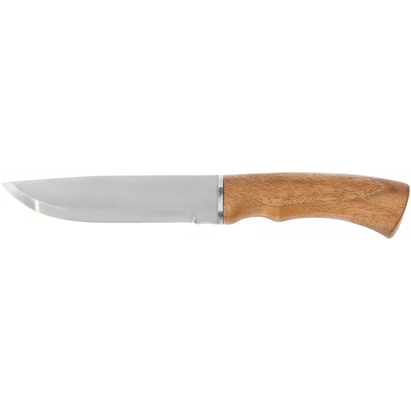 Ніж з фіксованим клинком BK06 від української ножової компанії BPS підійде для щоденного носіння, стане в нагоді на природі та в побуті, на риболовлі та під час походу. Клинок виготовлений з якісної сталі і має скандинавські спуски, завдяки чому має ідеальну геометрію для роботи з деревиною будь-якої твердості. Накладки на руків’ї округлої форми виконані із горіха і вкриті датською олією, що робить їх стійкими до вологи та бруду. В комплекті йдуть шкіряні піхви для безпечного зберігання та транспортування.
