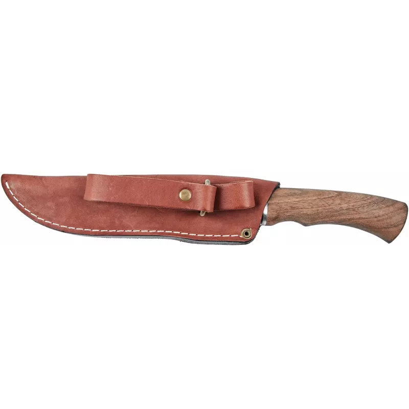 Ніж з фіксованим клинком BK06 від української ножової компанії BPS підійде для щоденного носіння, стане в нагоді на природі та в побуті, на риболовлі та під час походу. Клинок виготовлений з якісної сталі і має скандинавські спуски, завдяки чому має ідеальну геометрію для роботи з деревиною будь-якої твердості. Накладки на руків’ї округлої форми виконані із горіха і вкриті датською олією, що робить їх стійкими до вологи та бруду. В комплекті йдуть шкіряні піхви для безпечного зберігання та транспортування.