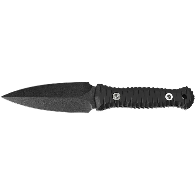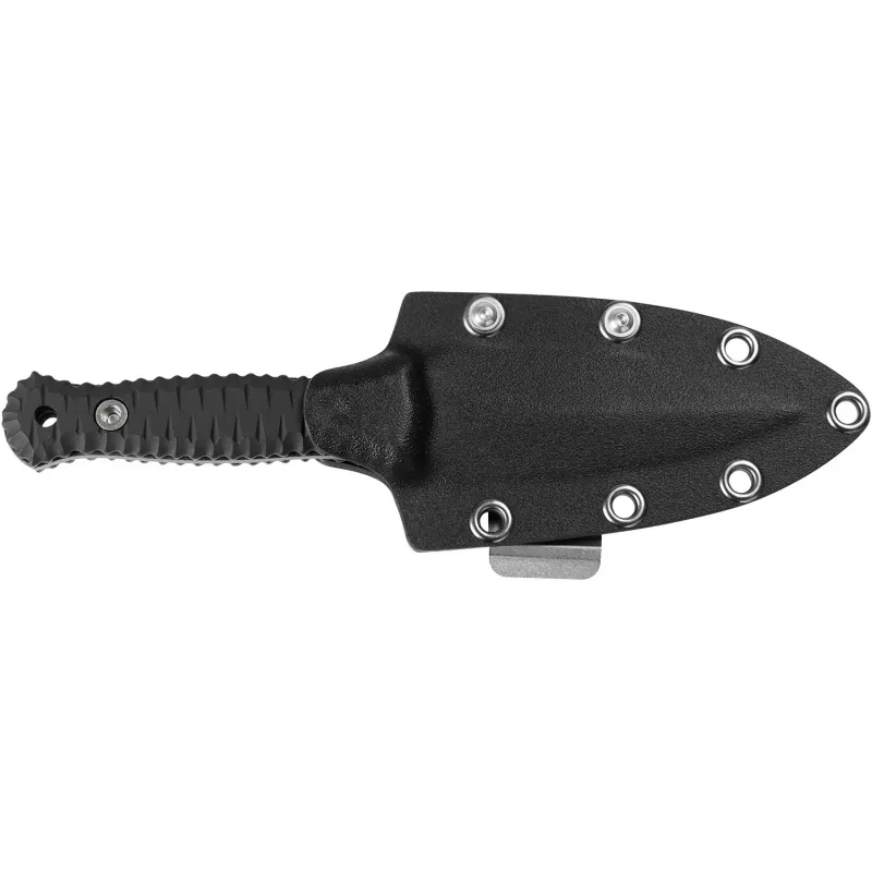 Клинок профілю Spear Point товщиною 5 мм виготовлено із нержавіючої сталі 1.4116, загартованої сучасними методами (термоциклічна обробка та кріообробка) до твердості 57 HRC. Ребро жорсткості по центру клинка підсилює вістря, а широкі спуски гарантують відмінні різальні властивості. Чорне покриття клинка надасть додаткового захисту та замаскує відблиски. Ергономічне руків’я з міцного ABS пластику забезпечує надійний хват і комфорт при використанні. Ніж ГЕКТОР йде у комплекті з добре підігнаним пластиковими піхвами, які мають знімну сталеву кліпсу, сумісну з MOLLE. Отвори чохла сумісні з універсальним кріпленням TEK LOK.