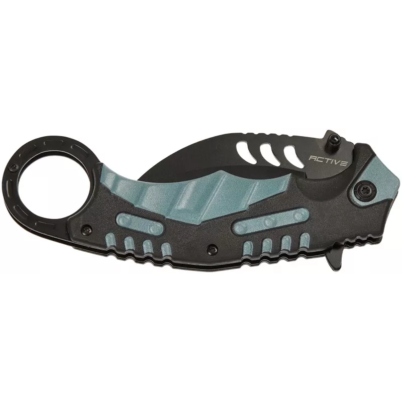 Клинок ножа виконаний з недорогої сталі марки 3Cr13, яка відрізняється хорошими показниками корозійної стійкості, а також простотою правки різальної кромки. Витягується клинок за допомогою фліпера або шпеника і надійно фіксується у робочому положенні сталевою пластиною замка Liner Lock. Ніж обладнаний системою шарикопідшипників, що сприяє легкому та плавному витягуванню клинка.