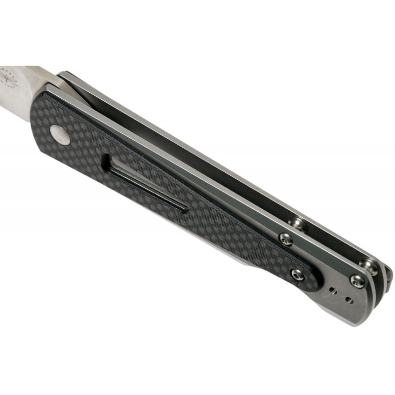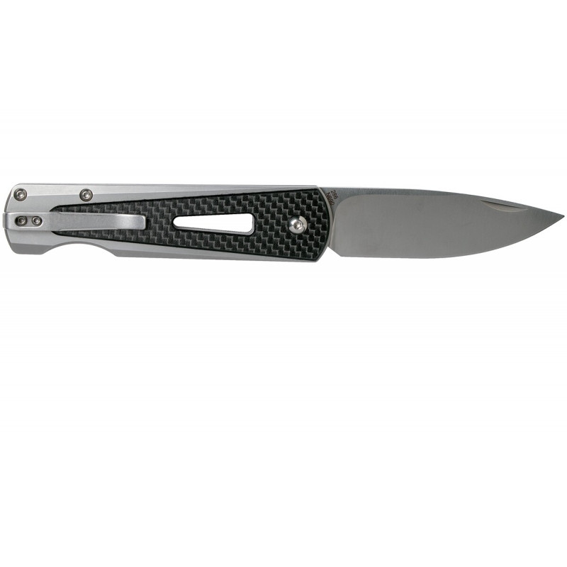 Клинок має сатиноване покриття. Рабоча частина становить 82 мм, а В обусі становить 3 мм. У відкритому положенні ніж має загальну довжину 194 мм При вазі 125 г він надійно і зручно поміщається в руці, незалежно від того, що ви ріжете.