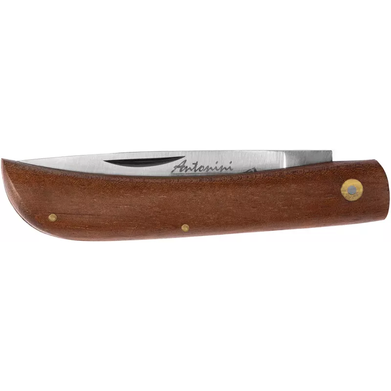 Antonini Pocket Maniaghese - натхненний типовими ножами з півночі Італії. Даний ніж чудово підійде для виконання всіх завдань на EDC або в польових умовах. Клинок ножа виконаний з нержавіючої сталі 420, що відкривається обома руками та немає фіксувального замка. Таке конструктивне рішення дозволить сміливо використовувати ніж майже по всьому світу. Злегка заокруглене руків’я Maniaghese має ергономічну форму та дозволить зручно, а головне надійно утримувати ніж. Матеріалом для руків’я було обрано дерево Сапелі, яке широко використовується у виробництві музичних інструментів, зокрема, електрогітар. Декоративні елементи та заклепки виготовлені з латуні.