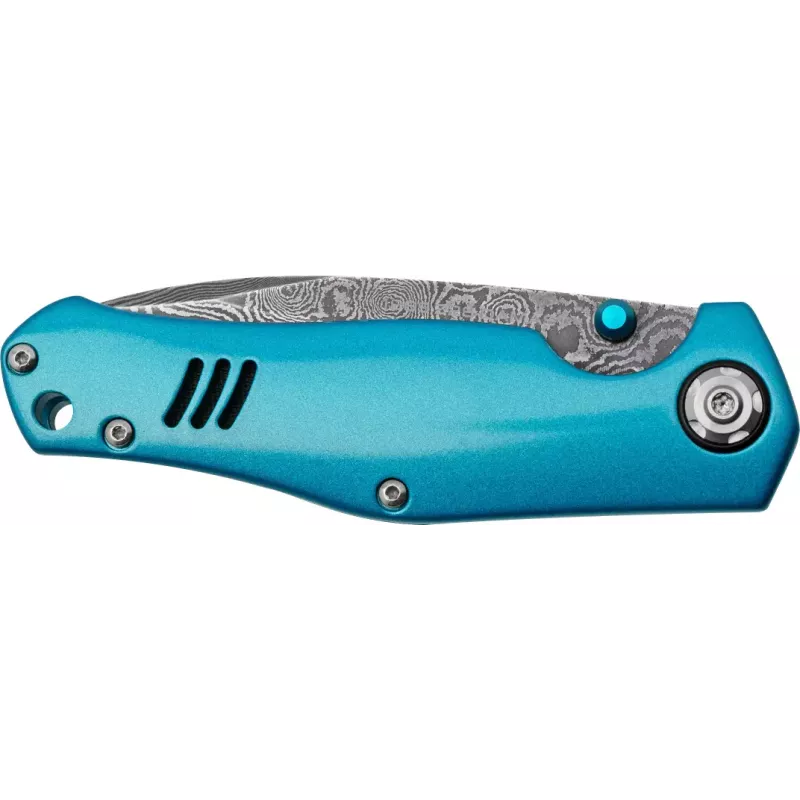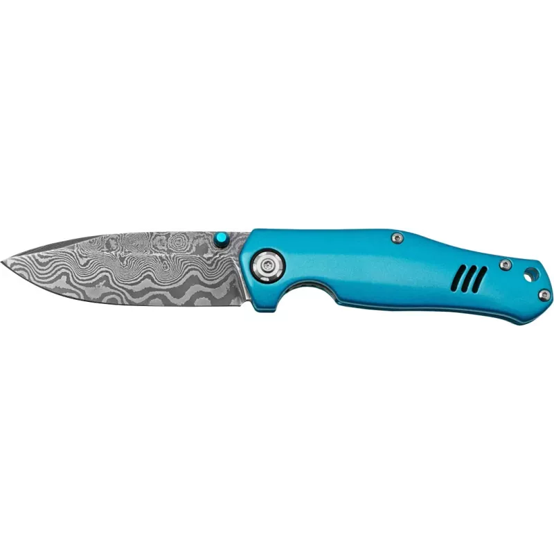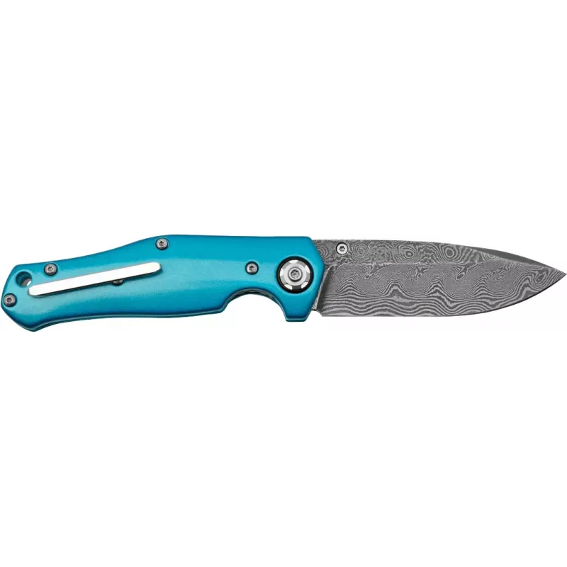 Клинок завдовжки 80 мм виконаний з 80-ти шарової дамаської сталі та відкривається за допомогою шпеника. Клинок приємно контрастує з руків’ям завдяки класичному дамаському візерунку на сталі. В якості механізму фіксації використовується замок Liner-Lock.