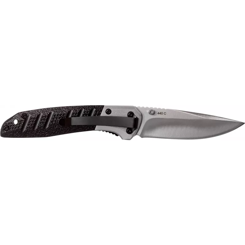 Клинок виконаний у формі Drop point з фальшлезом і насічками на тильній стороні для зручного упору великого пальця. Вибір такої форми обумовлений необхідністю не тільки проведення різу, а й для ефективного уколу. Матеріалом для клинка цієї моделі була обрана сталь 440С з високим показником твердості. Відкривається за допомогою шпенька і фіксується замком Linerlock.