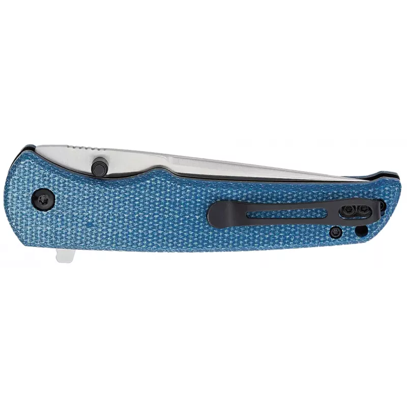 Матеріалом накладки обрану мікарту - приємну на дотик та досить цупку навіть у вологій руці. Модель виконана в глибокому синьому кольорі, що чудово поєднується з іншими кольорами цього ножа. Ергономічна форма та насічки для великого пальця, забезпечують зручний та безпечний хват.