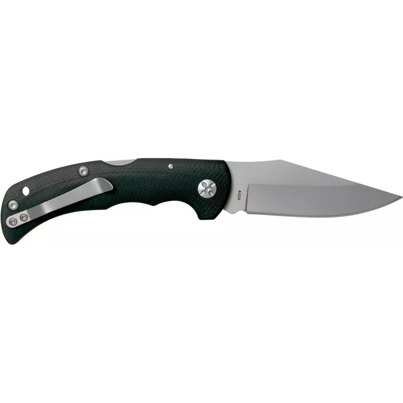Клинок виконаний у формі Clip point з широким обухом і долом, за який і здійснюється відкриття. Він дуже ефективний для проведення не тільки різу, а й для уколу. Для його створення була використана сталь 440А, яка має високу стійкість до корозії. Поверхня клинка матова. Фіксація в відкритому положенні здійснюється замком типу Backlock.