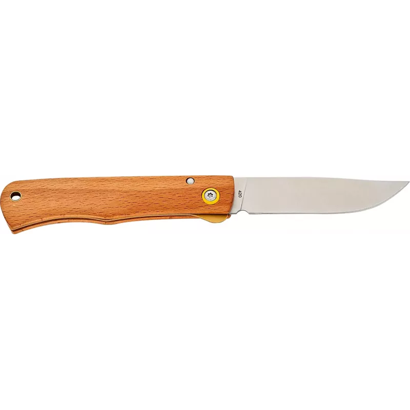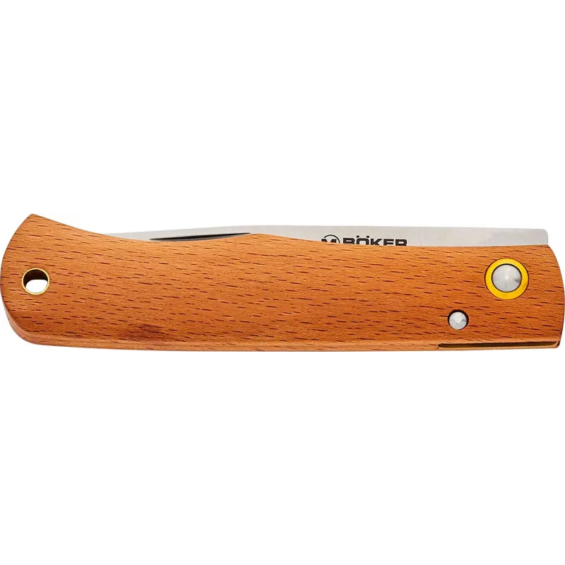 Boker Magnum Rusticus - це новий кишеньковий ніж від німецького виробника. Rusticus поєднує в собі повсякденну практичність з тією самою ноткою ностальгії по простим ножам вашого дитинства чи юності. Універсальний клинок профілю Drop Point виготовлений зі сталі 420 та має класичне сатинування. Ніж приводиться в робоче положення завдяки нігтьовій виямці та блокується надійним замком Liner Lock. Ергономічні накладки на латунних лайнерах руків’я виконані з термообробленої деревини червоного бука, яка приємна на дотик та не холодить руку. На торці руків’я розміщене латунний отвір під темляк чи ремінець. Boker Magnum Rusticus стане чудовим поповненням колекції для ностальгуючих ножеманів, а також ідеальним подарунком як перший кишеньковий ніж.