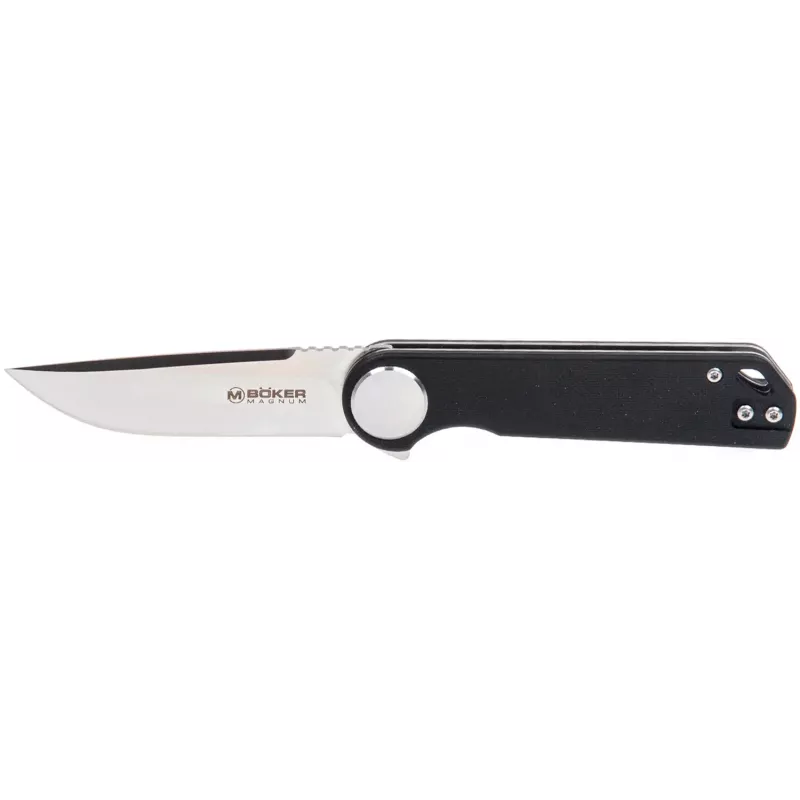 Skruva (Гвинт) - це новинка від Boker Magnum, яка ніколи не розхитається, завдяки масивному осьовому гвинту. Клинок ножа отримав універсальний профіль Drop Point та виготовлений зі сталі 440С. Ніж приводиться в робоче положення завдяки фліперу, а фіксується замком Liner Lock. Легкість та плавність відкривання забезпечує система шарикопідшипників. Привабливе фальшлезо і стримане сатинове покриття довершують зовнішній вигляд клинка. Накладки руків’я виконані з цупкого матеріалу G10, який гарантує міцний хват навіть у найнесприятливіших умовах. Придатність цього фолдера для повсякденного використання забезпечується двосторонньою кліпсою для глибокого носіння та отвором для темляка чи ремінця.