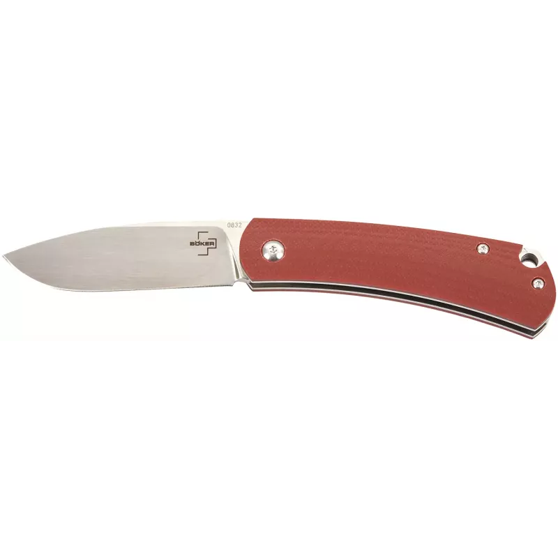 Складаний ніж Boker Plus Boston Slipjoint – сучасний кишеньковий ніж із класичними характеристиками, створений дизайнером ножів Стеном Мойзісом. Модель Boston Slipjoint оснащена клинком профілю Drop Point, виготовленим із високоміцної сталі D2. Ніж оснащений механізмом фіксації Slipjoint – простота та нічого зайвого. У відкритому стані лезо утримується пружиною між сатинованими пластинами з нержавіючої сталі. Накладки на руків’ї виготовлені з винно-червоного G10 з елегантним вигином для зручного хвату. Кишенькова кліпса виконана із міцної сталі. На торці розміщений отвір для темляка. У комплекті йде високоякісний нейлоновий чохол.