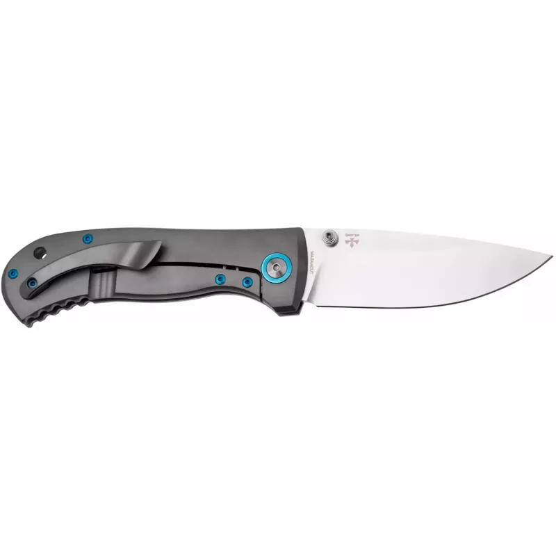 Сатиновий клинок профілю Drop Point виготовлений з порошкової металургійної сталі CPM MagnaCut. Ніж приводиться в робоче положення завдяки знімному, двосторонньому шпенику та надійно фіксується надзвичайно простим, проте надійним замком Frame Lock. Плавність та легкість ходу забезпечить система шарикопідшипників.