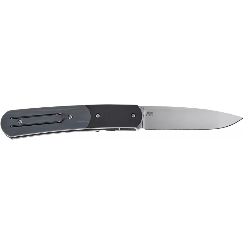 Boker Plus Dogleg Auto - нове творіння ножового концерну Boker спільно з дизайнером Стеном Мойзісом. Модель являє собою компактний, джентльменський ніж для щоденного використання. Клинок профілю Drop Point виготовлений із міцної, зносостійкої сталі D2. Фінішна обробка - філігранний сатин із найтоншими, як волосинка, лініями. Приводиться в робоче положення і закривається за допомогою зручної кнопки в заглибленні руків’я. Легкий вигин руків’я з двоскладовими накладками з нержавіючої сталі чорного кольору і G10 сірого, комфортно лягає у руку. На торці розміщена дротяна кліпса для прихованого носіння.