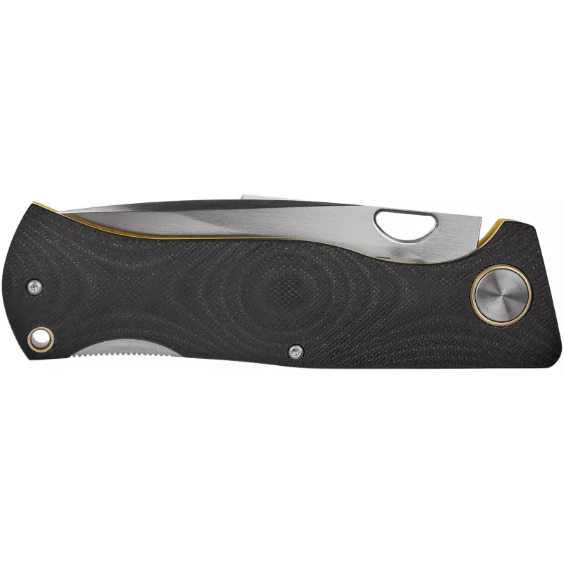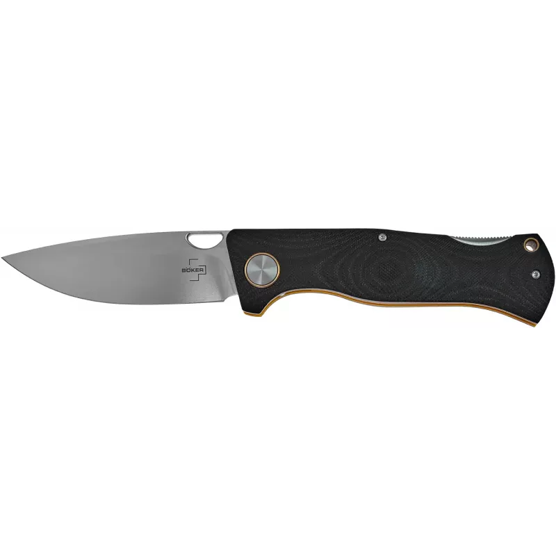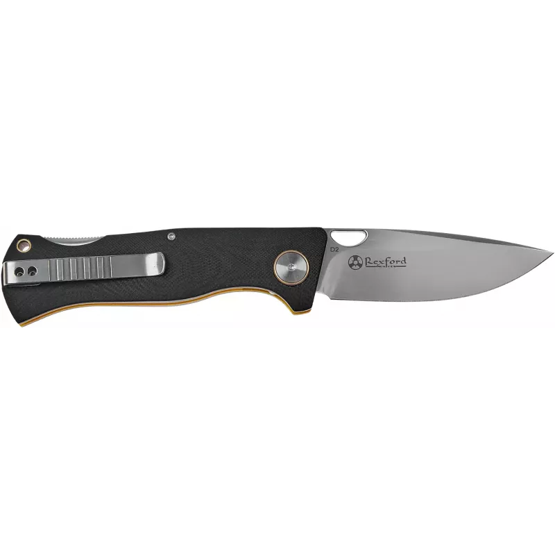 Відомий американський найфмейкер Тодд Рексфорд створив ніж Epicenter спільно з Boker Plus, що вражає своїми пропорціями і характеристиками. Для створення клинка профілю Drop Point використовувалась вуглецева сталь D2 з легкою сатиновою обробкою. Плавне відкриття гарантує система керамічних шарикопідшипників і об’ємний підпальцевий отвір. Фіксується і закривається за допомогою надійного замка Back Lock. Накладки на руків’ї виготовлені з міцного G10 чорного кольору зверху і соковитого жовтого всередині. Прикрасою слугує отвір для темляка з латунним кільцем і накладка на осьовому гвинті. Модель оснащена кишеньковою кліпсою глибокої посадки для комфортного носіння. У комплекті йде високоякісний нейлоновий чохол.