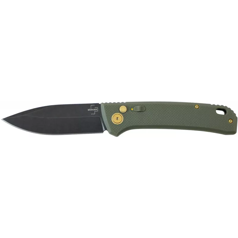 Клинок має форму з рисами як Drop Point, так і Spear Point виготовлений з інструментальної сталі D2 (59-61 HRC). Автоматична система дозволяє забезпечити миттєве відкриття ножа за допомогою кнопки, а задля надійності фіксації клинка як у відкритому, так і закритому стані наявний механізм блокування у вигляді перемикача.