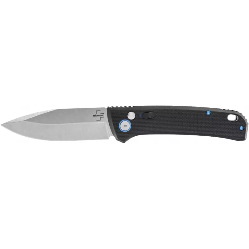 Клинок має форму з рисами як Drop Point, так і Spear Point виготовлений з інструментальної сталі D2 (59-61 HRC). Автоматична система дозволяє забезпечити миттєве відкриття ножа за допомогою кнопки, а задля надійності фіксації клинка як у відкритому, так і закритому стані наявний механізм блокування у вигляді перемикача.