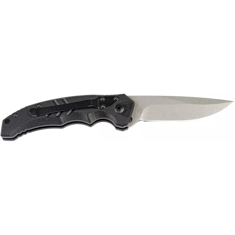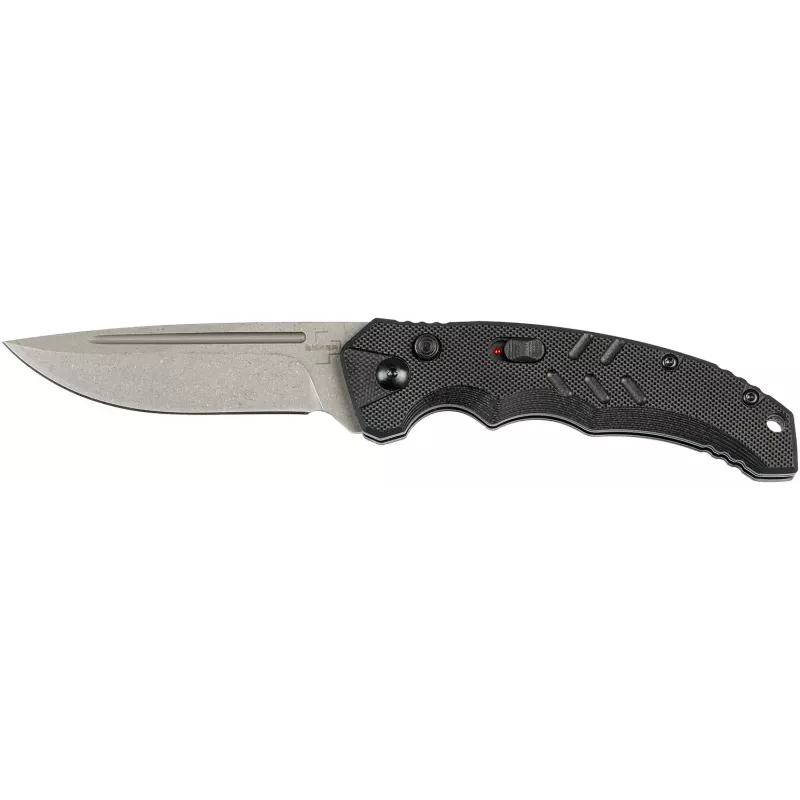Клинок виготовлений з інструментальної сталі D2 та має обробку Stonewash або Black Stonewash. Залежно від моделі, клинок може мати різний профіль: Clip Point, Drop Point, Spear Point або American Tanto. Ніж приводиться вмить в робоче положення завдяки кнопці та фіксується замком Push Button Lock. Інтегрований запобіжник захищає ніж від випадкового відкриття, наприклад в кишені. Ергономічні накладки на руків’ї виконані з текстурованого G10 із зручними, яскраво вираженими виїмками під пальці. На торці розміщений отвір під темляк, а кишенькова кліпса у положенні tip-up дозволить зручно носити ніж в кишені.