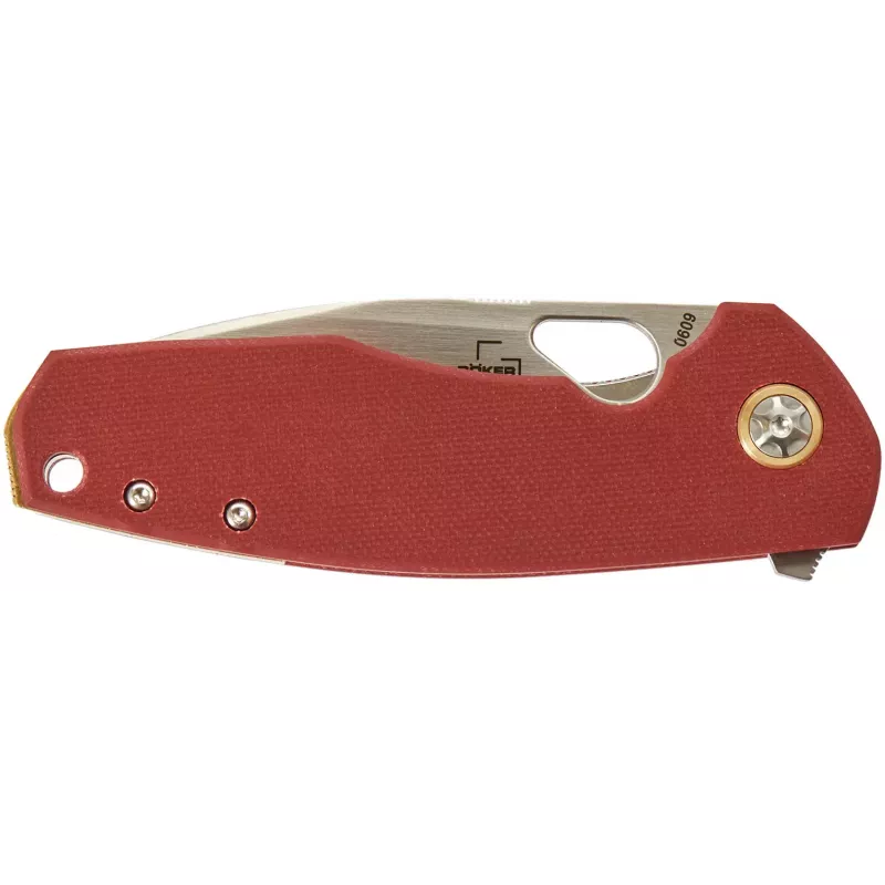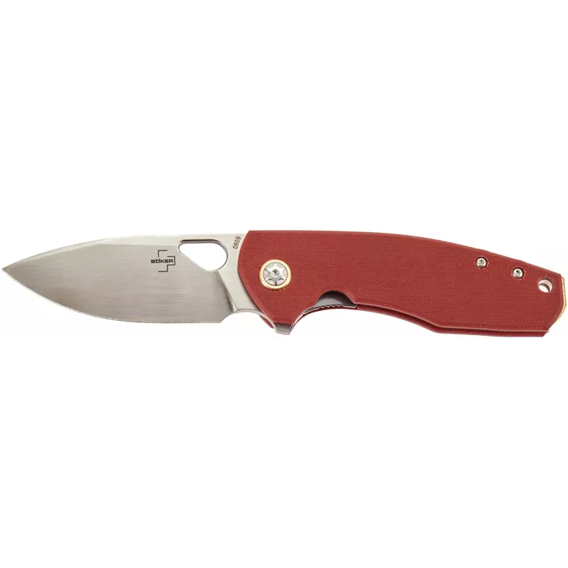 Boker Plus Little Friend – творіння ножового майстра Джеспера Воксне (Jesper Voxnaes). Клинок профілю Drop Point виконаний із порошкової сталі CPM-S35VN із сатинованим фінішем. Винно-червоні накладки на руків’ї виготовлені з G10. Приводиться у робоче положення клинок за допомогою фліпера або підпальцевого отвору, а сталева пластина замку Liner Lock надійно фіксує лезо в робочому положенні. Відмінними рисами моделі Little Friend є зіркоподібний осьовий гвинт із латунним кільцем, латунний бекспейсер та рікассо. Кліпса для носіння в кишені у положенні tip-up та отвір для темляка завершують EDC-дизайн ножа. В комплекті йде високоякісний нейлоновий чохол для зберігання.