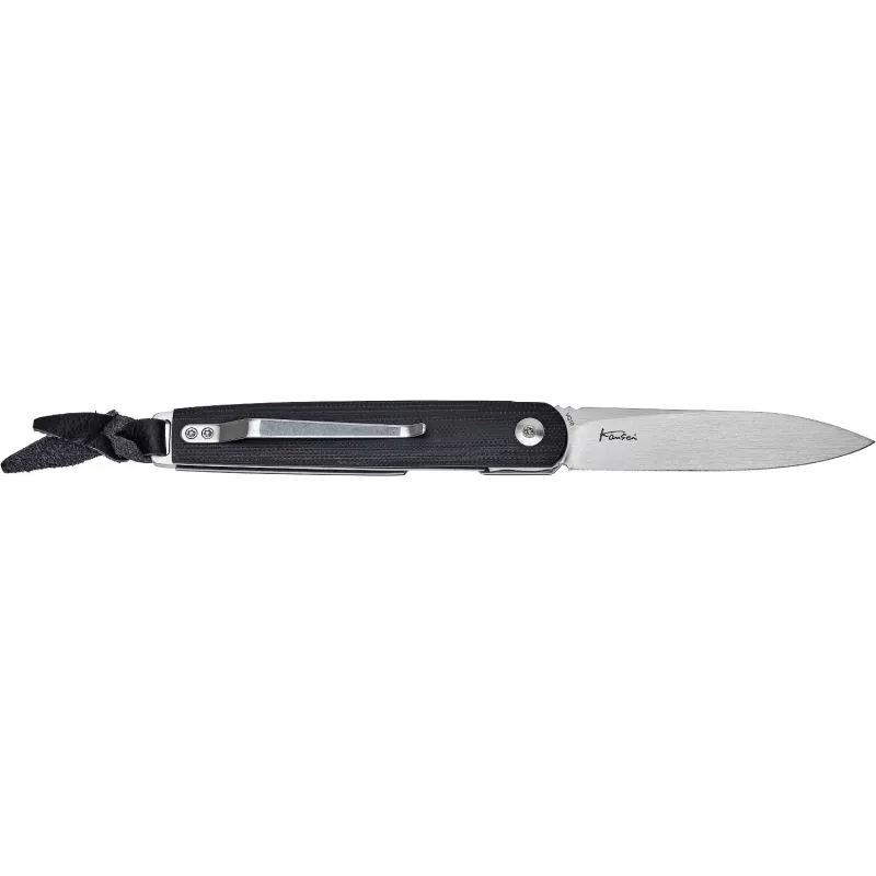 Клинок виготовлений з японської сталі VG-10 з високим вмістом кобальту. Сталь добре тримає заточення і слабо зношується навіть при інтенсивному використанні. Ніж розкривається за допомогою двох симетрично розташованих фліперів, але в розкритому положенні їх, з-за витонченого дизайнерського рішення не видно. Розкриття дуже м’яке, чому сприяють високоякісні підшипники.