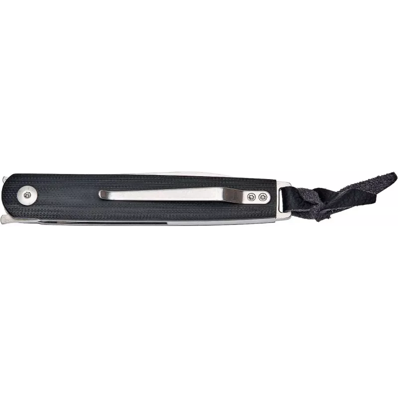 Накладки на рукоять можуть бути виготовлені з G-10, дерева кокоболо або карбону. Замок типу Liner Lock надійно фіксує клинок в робочому положенні. Розробники з вигадкою підійшли до реалізації спейсера – він досить масивний, виступає за межі рукоятки в районі навершя і закінчується прямокутним отвором для темляка.