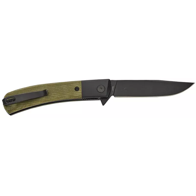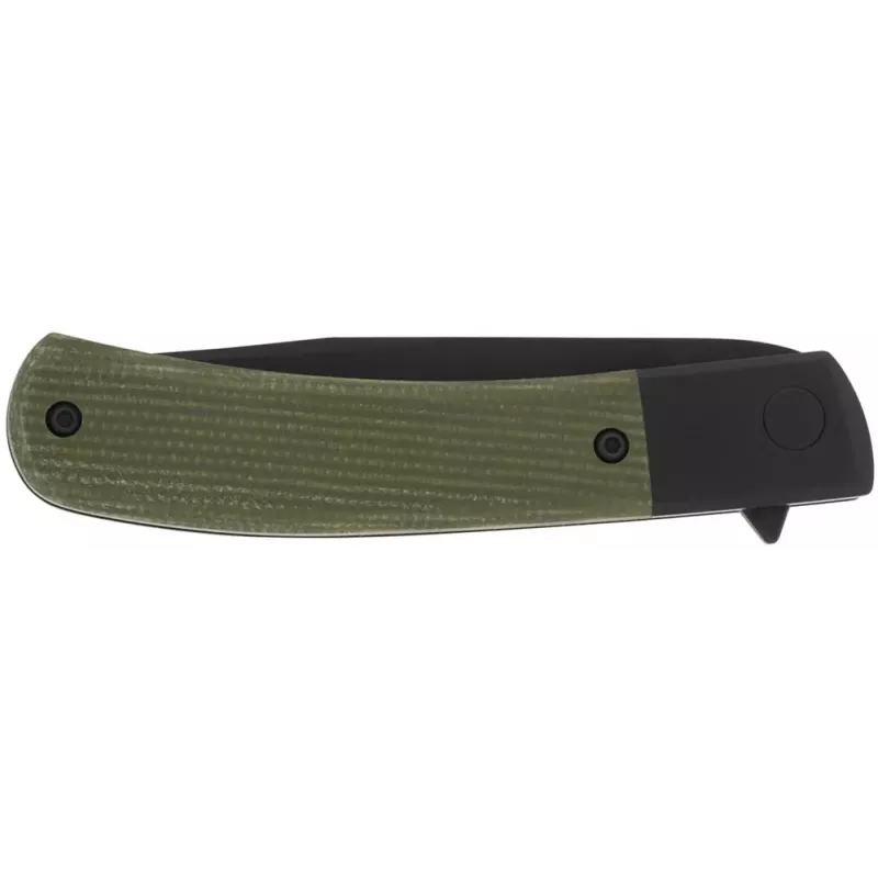 Руків’я інструменту вироблене з зеленої Мікарти та має чорний больстер, чим гармонійно доповнює дизайн всього ножа.