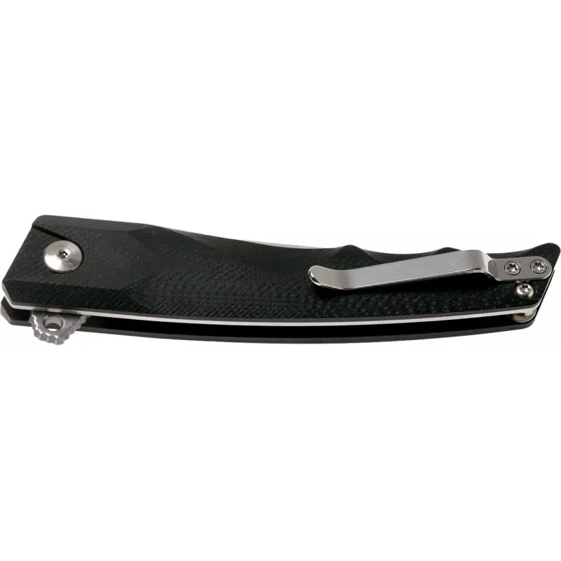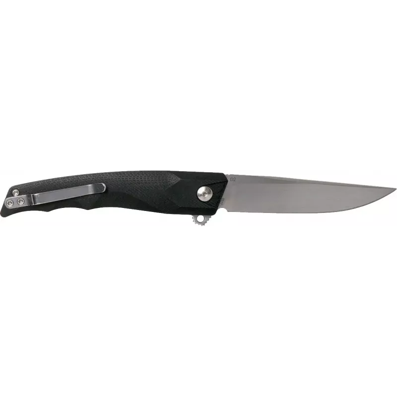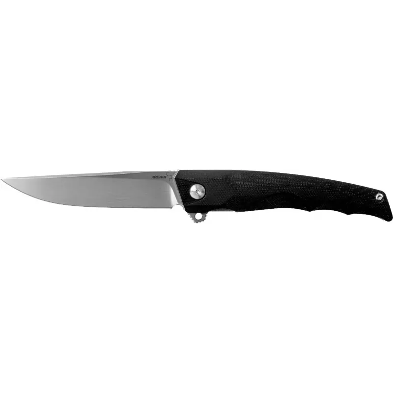 Компактний і легкий складаний ніж Boker Plus Shade призначений для повсякденного носіння. Сатинований клинок виготовлений зі сталі D2, що здатна тривалий час зберігати гостроту різальної кромки. Він легко витягується однією рукою за допомогою плавника(фліпера) і надійно фіксується замком Liner lock. Ніж плавно відкривається завдяки шарикопідшипнику. Для полегшення ваги конструкції прибрали передній лайнер, а в плавнику зробили отвір. Накладки рукоятки виконані зі зносостійкого склотекстоліти G10 чорного кольору. Для більш комфортного носіння передбачена кишенькова кліпса.