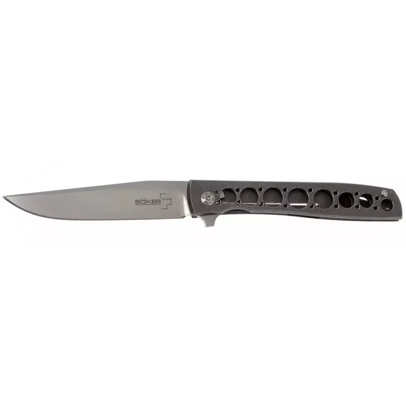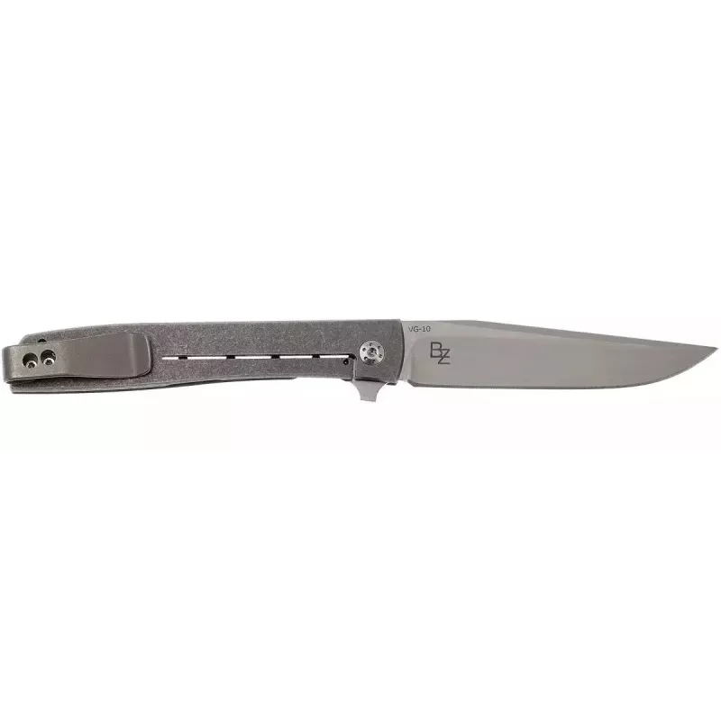 Ультратонкий (8 мм без кліпси) ніж Urban Trapper авторства Бреда Зінкера (Brad Zinker) - ідеальний варіант для щоденного носіння в весняно-літній сезон. Його вага – 48 грам практично не відчувається, а конструкція кліпси передбачає глибоке розташування ножа в кишенях одягу. Клинок класичної форми з японської сталі VG-10 з дзеркальною поліровкою відкривається за допомогою ледь помітного фліпера і фіксується у відкритому положенні замком фреймлок. Плавність відкривання досягається завдяки використанню підшипників. Отвори в рукояті з титану додатково полегшують вагу ножа і суттєво покращують контроль.