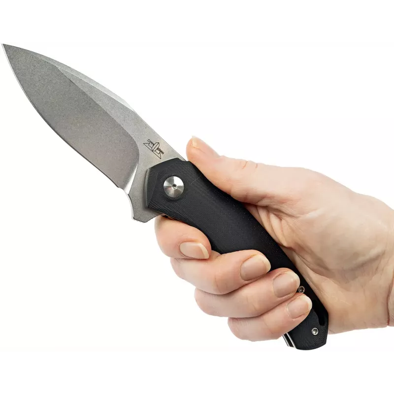 Клинок приводиться в робоче положення легким натисканням на фліпер, а плавність виходу забезпечується системою керамічних шарикопідшипників. Насічки на фліпері гарантують краще зчеплення під час відкривання клинка. Осьовий гвинт відполірований з лицевої сторони і прикрашений логотипом бренду із торцевої. Фіксується клинок у відкритому положенні простим, але надійним замком Liner-Lock. На лайнері розміщений «сухарик», який зменшує тертя клинка об лайнер, що значно продовжить службу фіксуючого механізму.