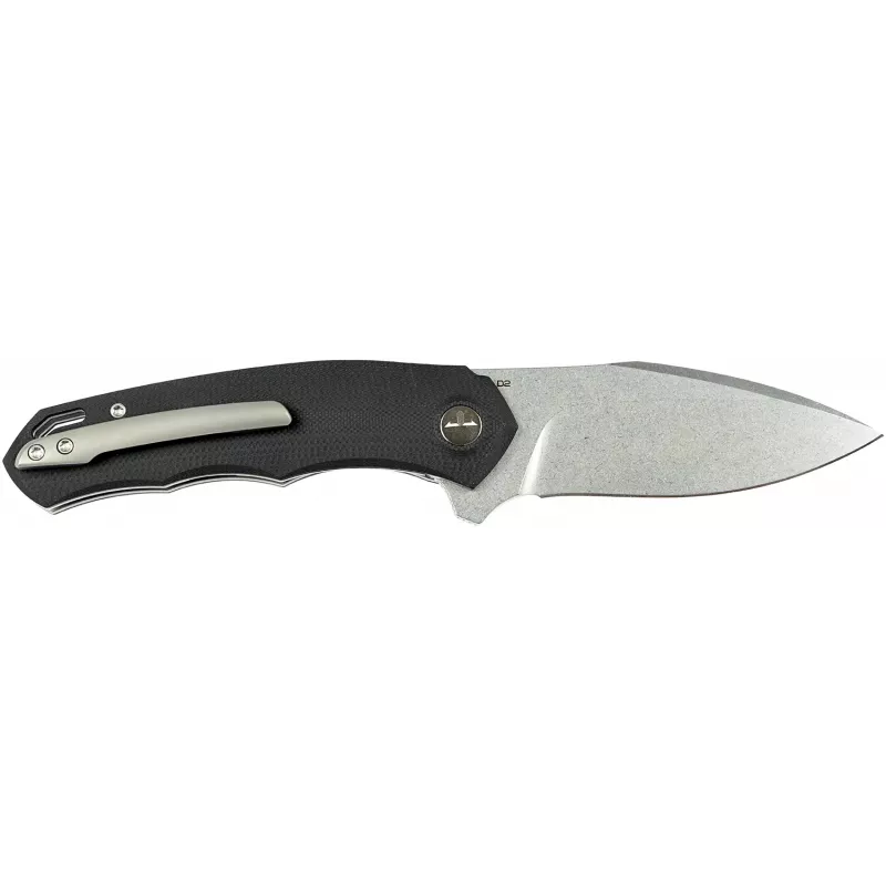 Перфоровані титанові лайнери та бекспейсер надають більшої міцності загальній конструкції, але не обтяжують її. Накладки на руків’ї виконані з склотекстоліту G-10 з нековзкою 3D обробкою. Ергономічна форма руків’я та підпальцеві виїмки гарантують комфортне розміщення в руці та надійних хват. На торці розміщений об’ємний отвір для темляка та фрезована титанова кліпса.