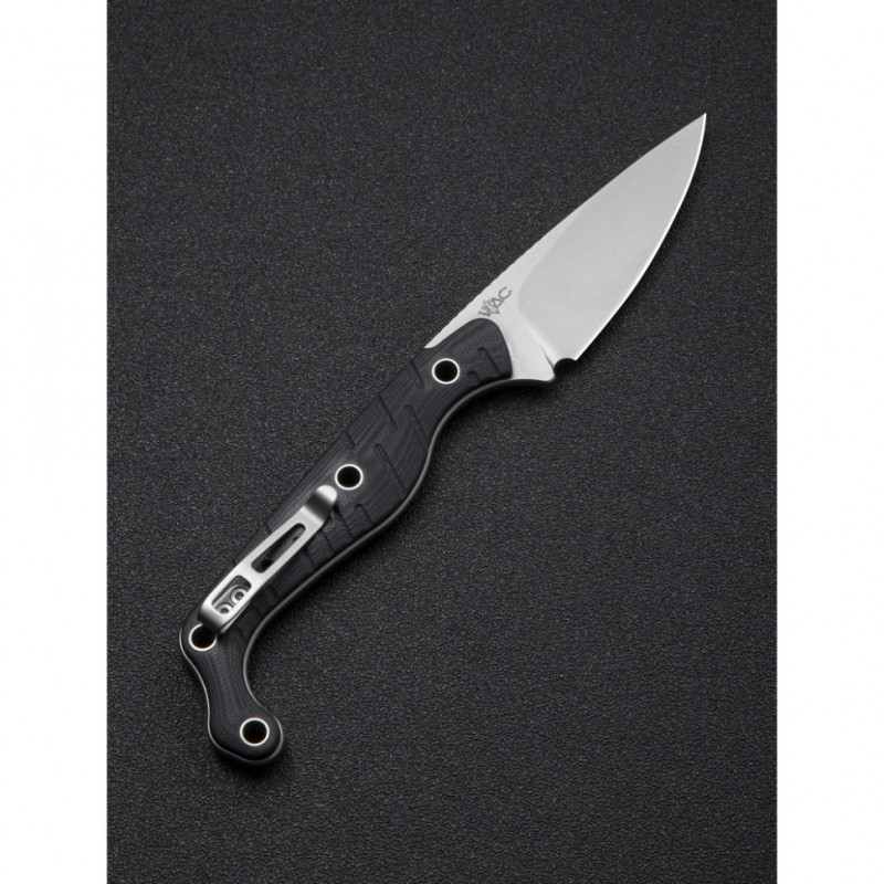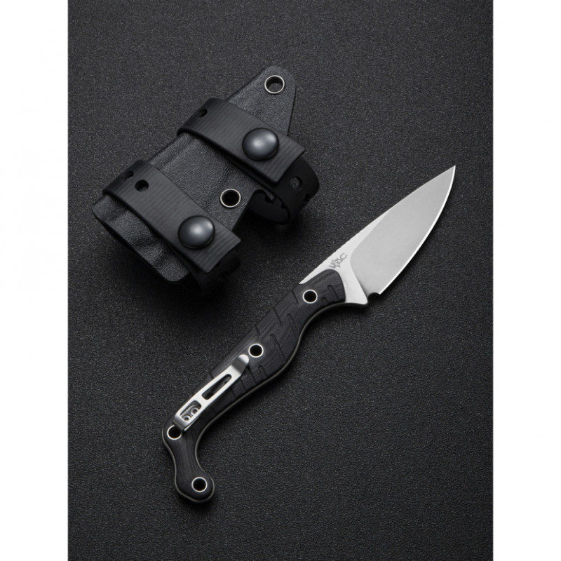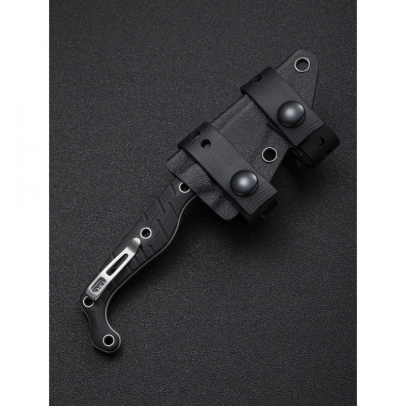 - Накладки G10 по обидва боки руківʼя. Багатошаровий композит стійкий до вологи та зношування, не вбирає воду та зберігає цілісність під час механічних впливів. Скошення по краях забезпечують комфортний хват без тиску на долоню. Наскрізні отвори роблять ніж легшим і дозволяють кріпити його на спорядженні в різних положеннях.