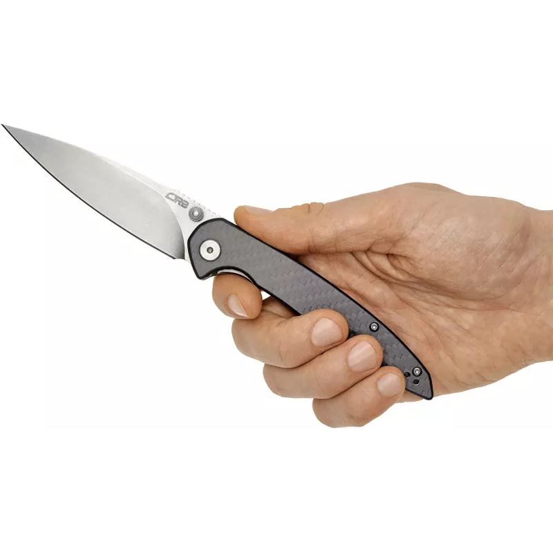 Рукоять без зайвих вигинів відмінно лежить в руці, а накладки, виготовлені з текстурованого вуглецевого волокна і запобігають зісковзуванню ножа під час робіт.