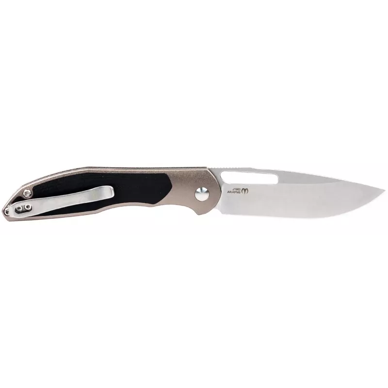 Клинок виконаний з нержавіючої сталі AR-RPM9, що вирізняється високою стійкістю до корозії, тривалим утриманням ріжучої кромки та легкістю у заточуванні. Профіль Clip Point робить його універсальним для різноманітних завдань, а фініш Stonewash або чорне PVD покриття захищає поверхню від подряпин та підкреслює стиль ножа.