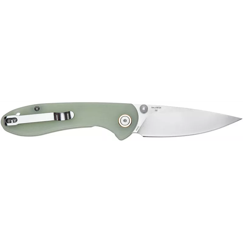 Витягується клинок за допомогою шпеника, а наявність шарикопідшипникової системи забезпечує плавний вихід клинка. Накладки на руків’я виготовлені з ударостійкого склотекстоліту G-10 або карбону, котрий забезпечує надійне утримання руці, а привабливий зовнішній вид виробу досягається завдяки поліруванню.