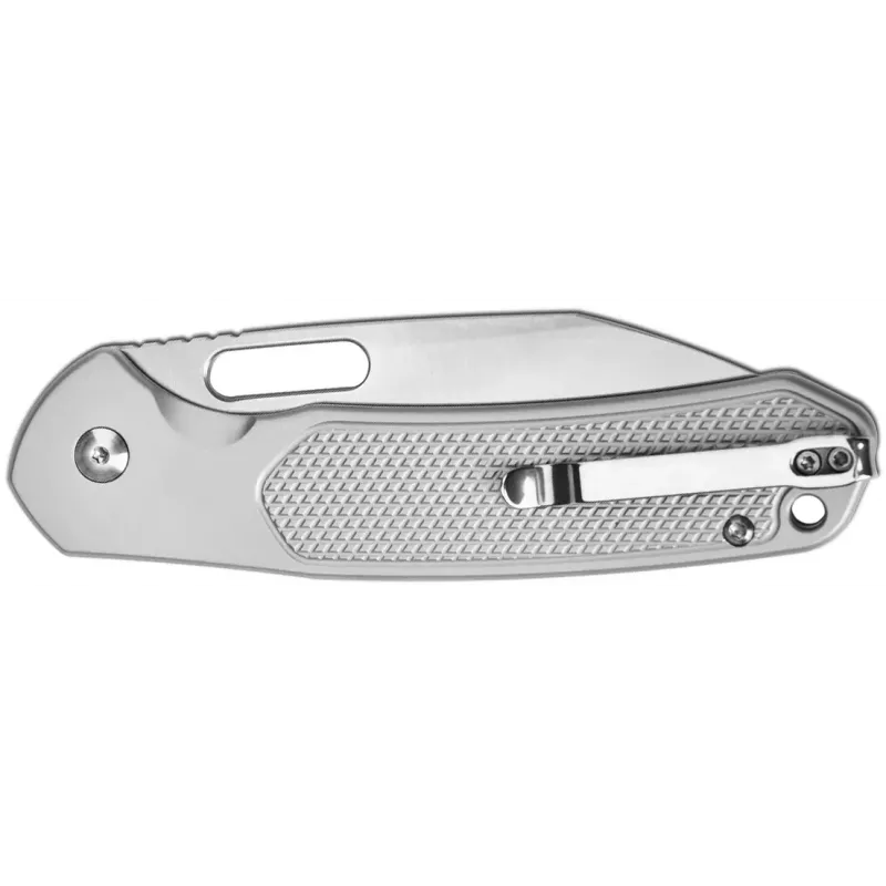 Високі прямі спуски починаються майже від самого обуха, загальна довжина клинка становить 94 мм при товщині 2.7 мм. Важливою деталлю в цьому ножі є наявність чойла - невеликого округлого заглиблення під вказівний палець для більш делікатної роботи з невеликими предметами. У робоче положення клинок наводиться за рахунок підпальцевого отвору.