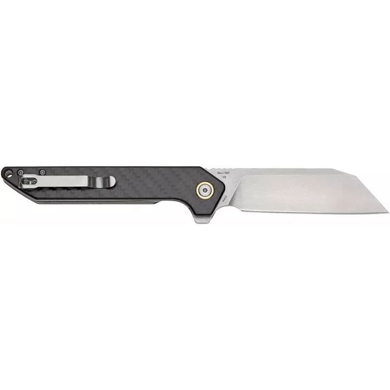 При виготовленні накладок використовується вуглецеве волокно. Рукоять оснащена кліпсою з нержавіючої сталі, а також отвором для кріплення темляка.