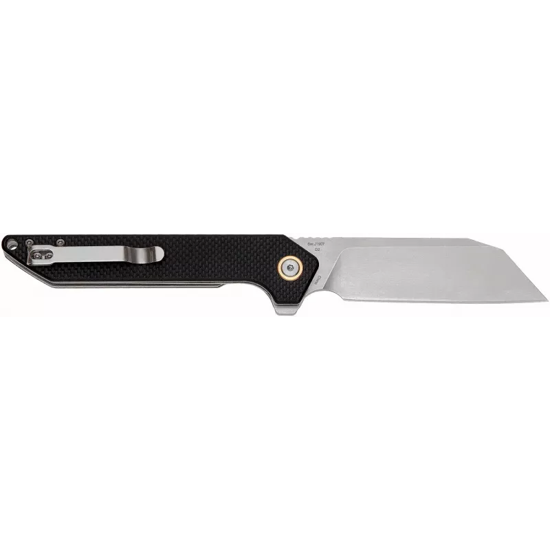 Клинок виготовлений з високоміцної сталі D2, а захисно-декоративна обробка металу Stonewash надає клинку додаткової твердості і зносостійкості. Клинок оснащений замком типу Liner Lock, який надійно фіксує його. Шарикопідшипниковий механізм дозволяє витягувати клинок швидко і легко.