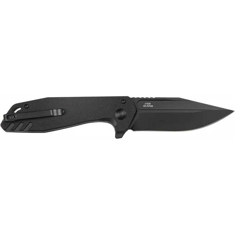 CJRB Riff - міцний складаний ніж, який неодмінно знайде своє місце як у похідному спорядженні, так і в кишені для щоденних завдань. Модель оснащена масивним клинком профілю Clip Point. Для його створення слугувала фірмова сталь компанії - AR-RPM9 (Artisan-Rare Powdered Material 9 Element Steel). Ексклюзивна сталь має однорідну структуру, яка дає змогу зберігати ріжучу кромку гострою впродовж тривалого періоду, проста в виправленні і чудово витримує навантаження. Яскраво виражене фальшлезо гарантує хороші проникаючі якості. На обох сторонах клинка розміщений дол на всю довжину обуха, що дало змогу зменшити вагу клинка без втрат у функціональних якостях. Насічки на обуху призначені для упору великим пальцем для більш делікатного різу. Клинок може мати обробку Stonewash або захисне, чорне PVD (Physical Vapor Deposition) покриття. Приводиться в робоче положення фліпером, а фіксується замком Button Lock. Плавний вихід клинка гарантує система керамічних шарикопідшипників. Накладки на руків'ї можуть варіюватися, залежно від обраної моделі: мікарта або G-10. На торці розміщена зручна кишенькова кліпса глибокої посадки та отвір під темляк.