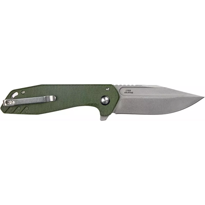CJRB Riff - міцний складаний ніж, який неодмінно знайде своє місце як у похідному спорядженні, так і в кишені для щоденних завдань. Модель оснащена масивним клинком профілю Clip Point. Для його створення слугувала фірмова сталь компанії - AR-RPM9 (Artisan-Rare Powdered Material 9 Element Steel). Ексклюзивна сталь має однорідну структуру, яка дає змогу зберігати ріжучу кромку гострою впродовж тривалого періоду, проста в виправленні і чудово витримує навантаження. Яскраво виражене фальшлезо гарантує хороші проникаючі якості. На обох сторонах клинка розміщений дол на всю довжину обуха, що дало змогу зменшити вагу клинка без втрат у функціональних якостях. Насічки на обуху призначені для упору великим пальцем для більш делікатного різу. Клинок може мати обробку Stonewash або захисне, чорне PVD (Physical Vapor Deposition) покриття. Приводиться в робоче положення фліпером, а фіксується замком Button Lock. Плавний вихід клинка гарантує система керамічних шарикопідшипників. Накладки на руків'ї можуть варіюватися, залежно від обраної моделі: мікарта або G-10. На торці розміщена зручна кишенькова кліпса глибокої посадки та отвір під темляк.
