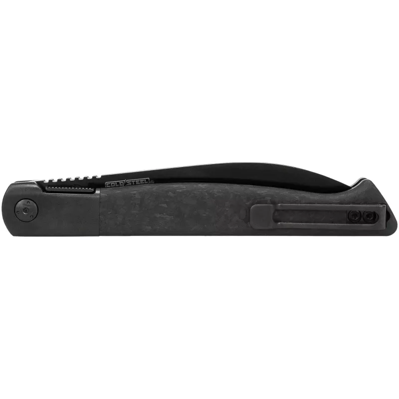 Клинки Cold Steel Spectre виготовляються зі сталі 20CV та мають профіль Hawkbill або Drop Point, залежно від обраної моделі. Ніж приводиться в робоче положення шпеником та фіксується замком Liner Lock. Насічки на обусі надають додаткового упору під час інтенсивної роботи. Подовжене, ергономічне руків’я має больстер з титану та накладки з вуглецевого волокна, які ідеально доповнюють клинок з чорним PVD покриттям. На кінці руків’я розміщена кліпса для зручного носіння ножа на кишені або спорядженні.