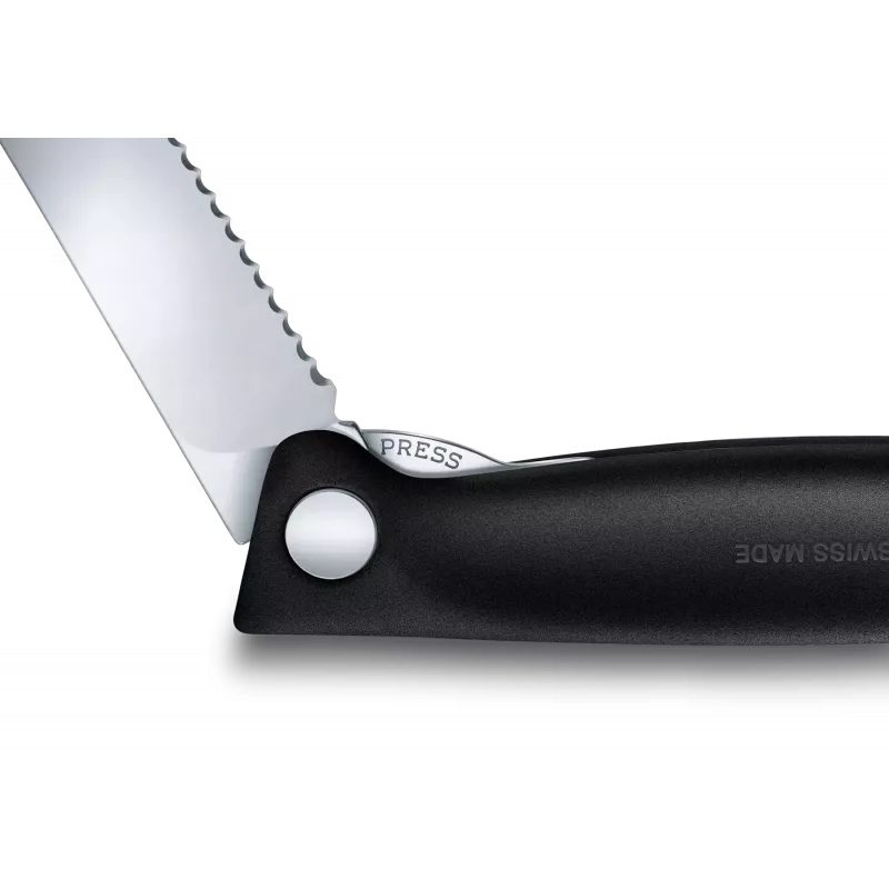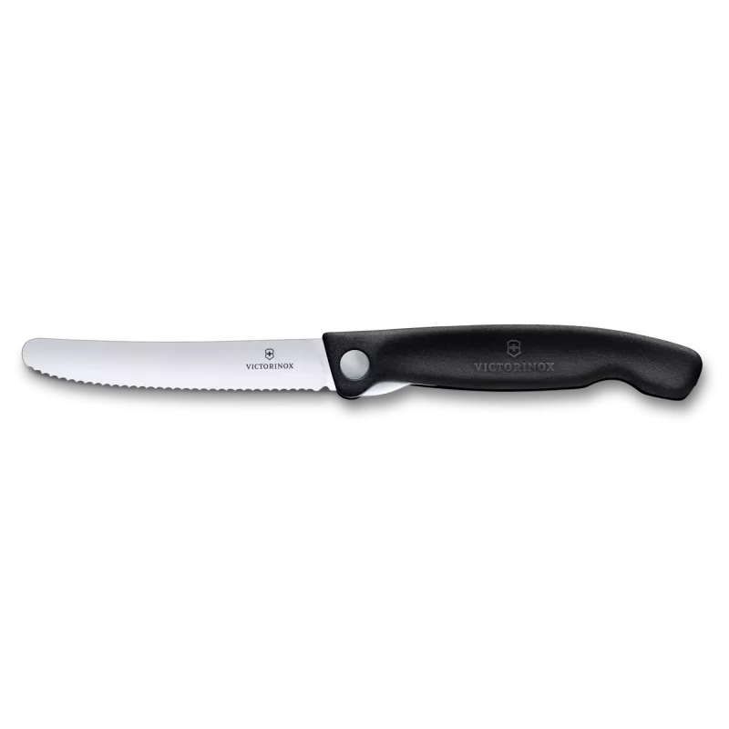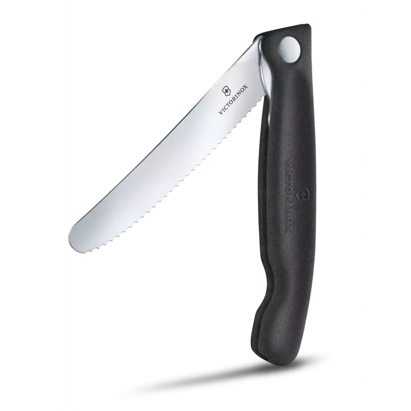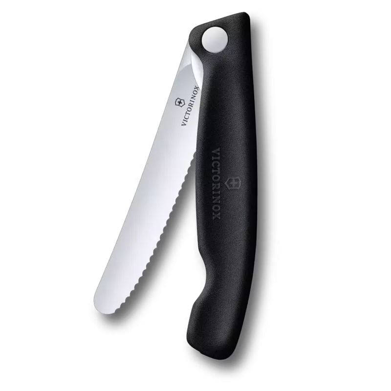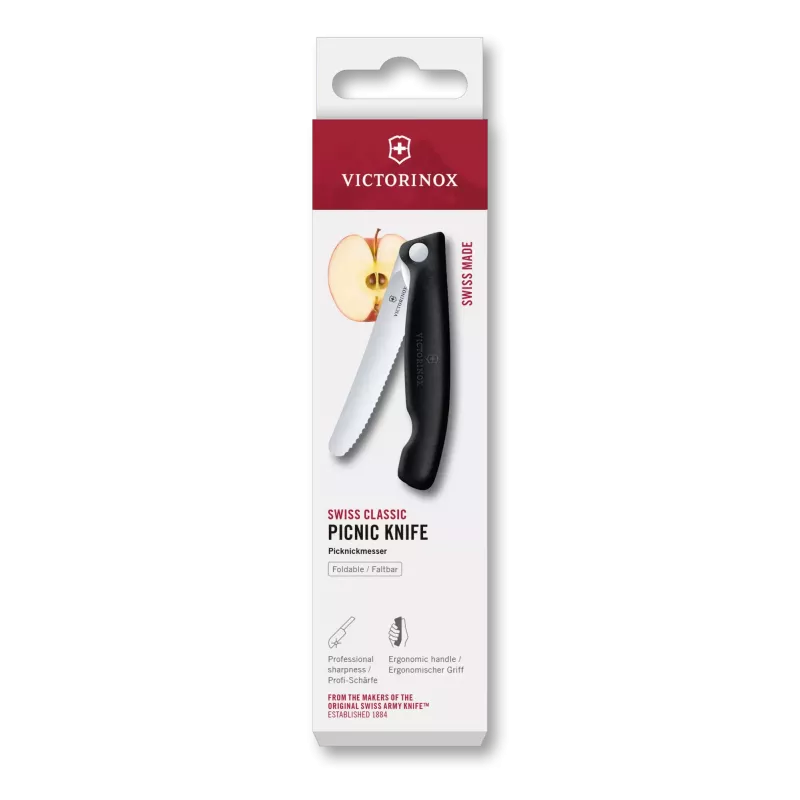 Цей ніж для пікніка оснащений складним професійним гострим лезом з хвилеподібним заточуванням, яке надійно забирається в рукоятку для зручності транспортування та зберігання. Легка ергономічна рукоятка забезпечує зручний та контрольований хват. Виготовлений у Швейцарії та підходить для миття в посудомийній машині, він розроблений для зручності, портативності та довговічності.