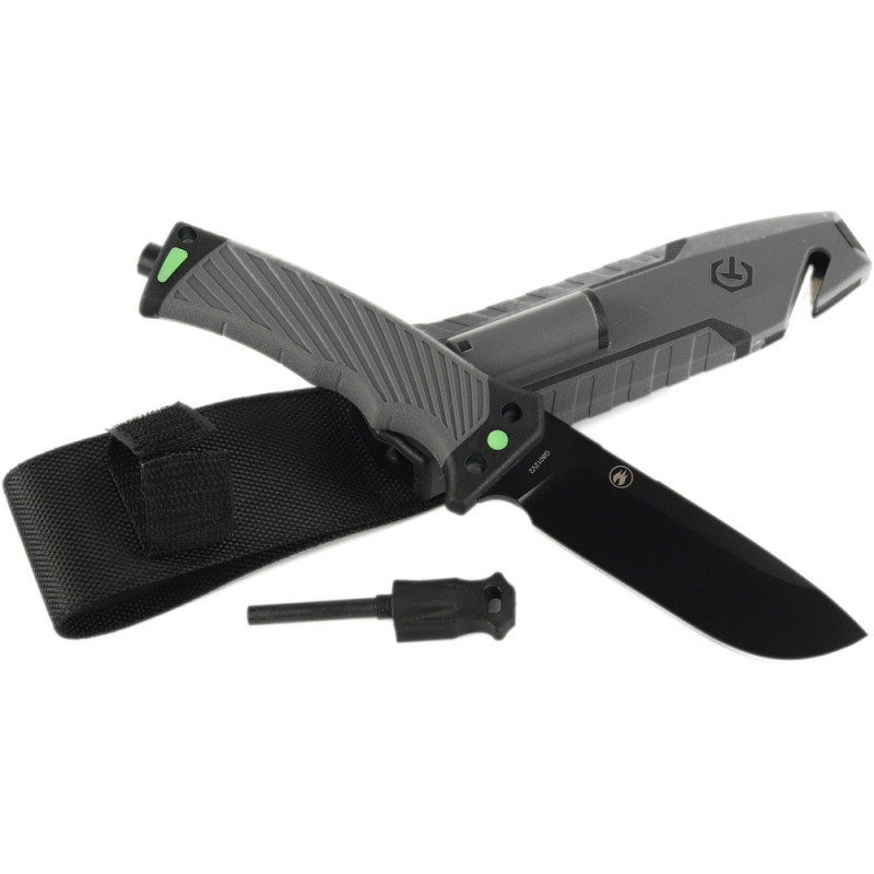Ніж Ganzo G8012V2-GY - яскравий приклад надійного інструменту, який не боїться складних завдань. Його клинок виготовлений з високовуглецевої стали 8CR13 з твердістю 58 HRC, що поєднує якості, які необхідні справжньому ножу для виживання. Завдяки високому вмісту хрому, сталь несприйнятлива до появи корозії і має тривалий термін служби. Ріжуча кромка надовго зберігає свою гостроту і ефективно працює навіть з твердими сортами деревини, що стане в нагоді під час відпочинку на природі. За рахунок ширини клинка, яка дорівнює 5 міліметрів, досягається підвищена надійність інструменту при інтенсивних і тривалих навантаженнях. Клинок з прямим заточуванням має темне матове покриття, які приховує невеликі подряпини на лезі.